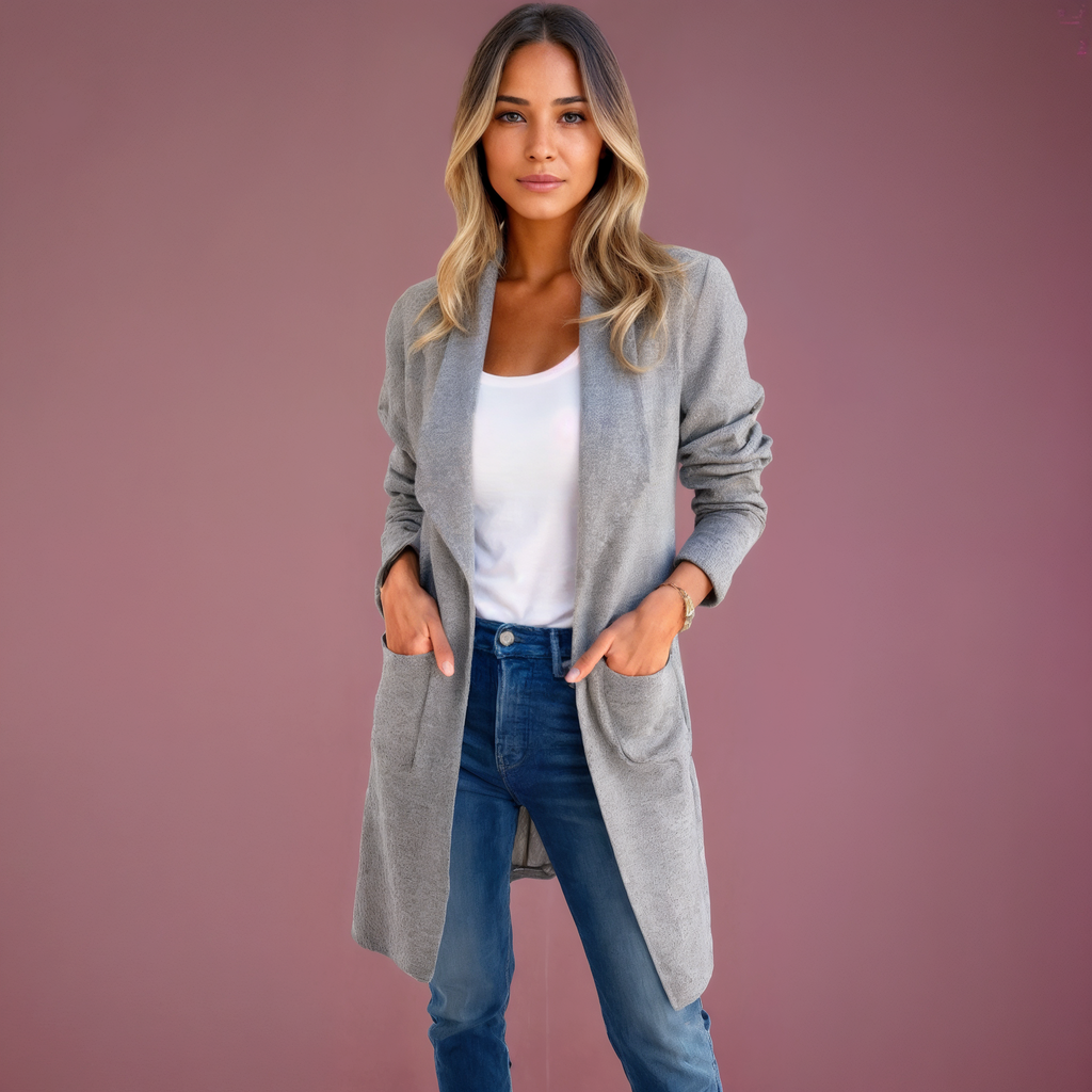 Conforto e elegância no ponto certo. O Casaco Maitê une caimento fluido e estrutura leve para te acompanhar em dias frios leves e ambientes climatizados, com visual sofisticado e prático.