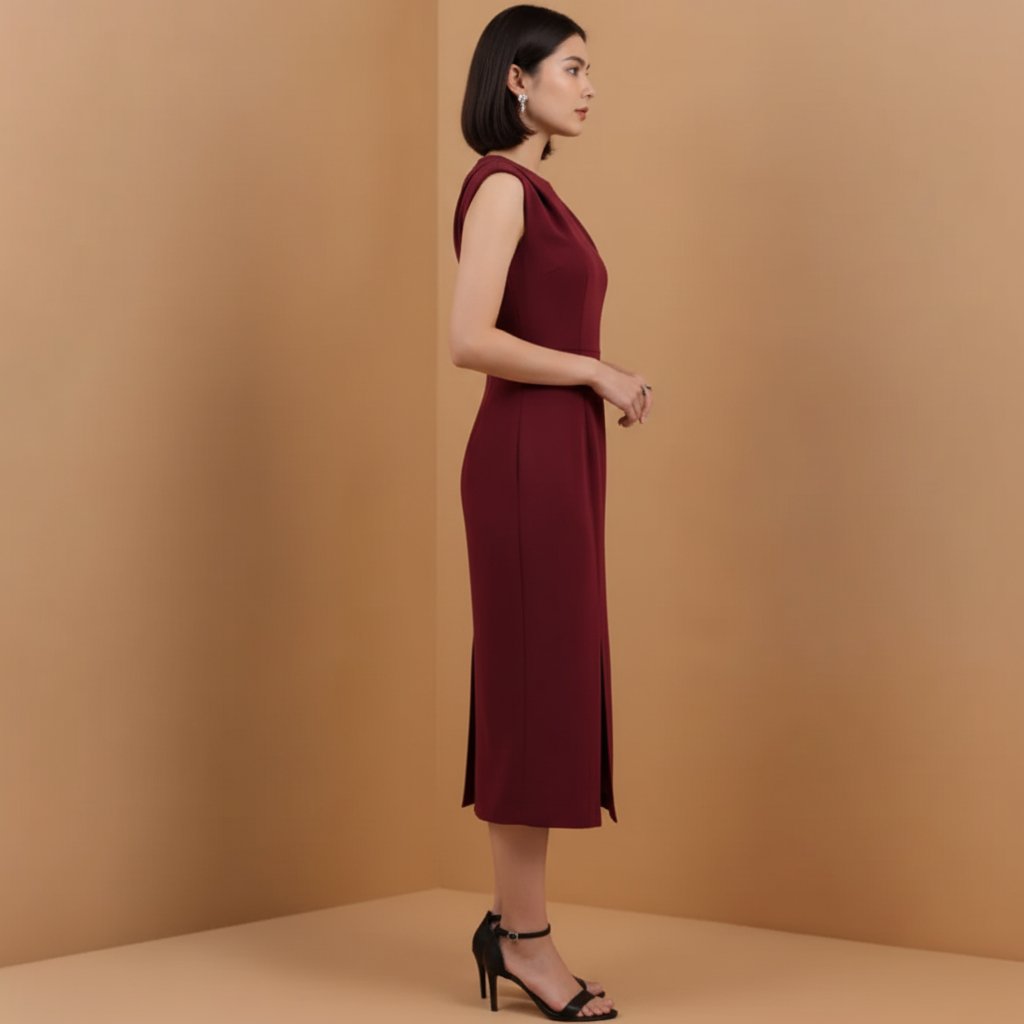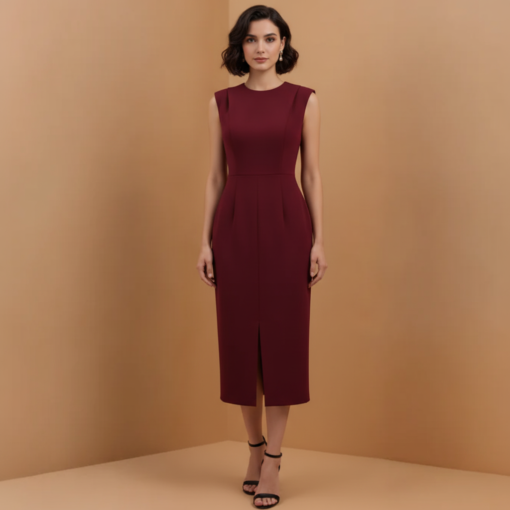 Elegância que veste fácil. Um vestido longo com toque leve e caimento fluido para valorizar a silhueta com conforto, ideal para produções do dia à noite.